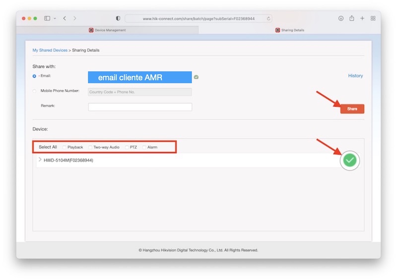 Select and share all the CCTV recorders you want to add to the amrconnect system.