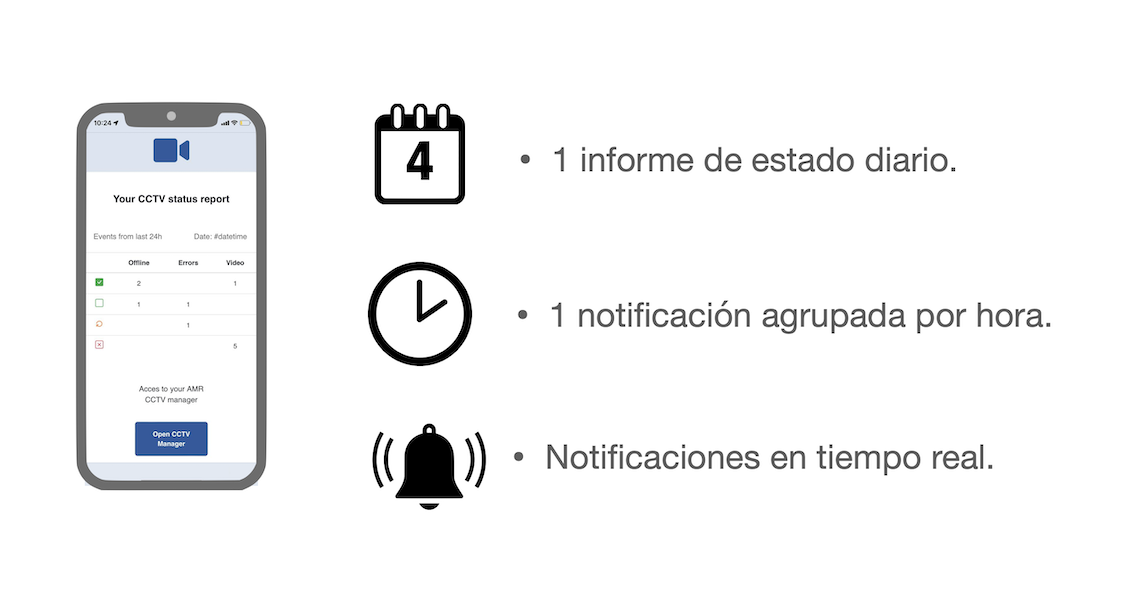 If there are several new events, notifications can be grouped into a single email every hour, avoiding excessive notifications. You will receive a single email with the status report of the alarms generated in the last 24 hours. Frequency can be adjusted.